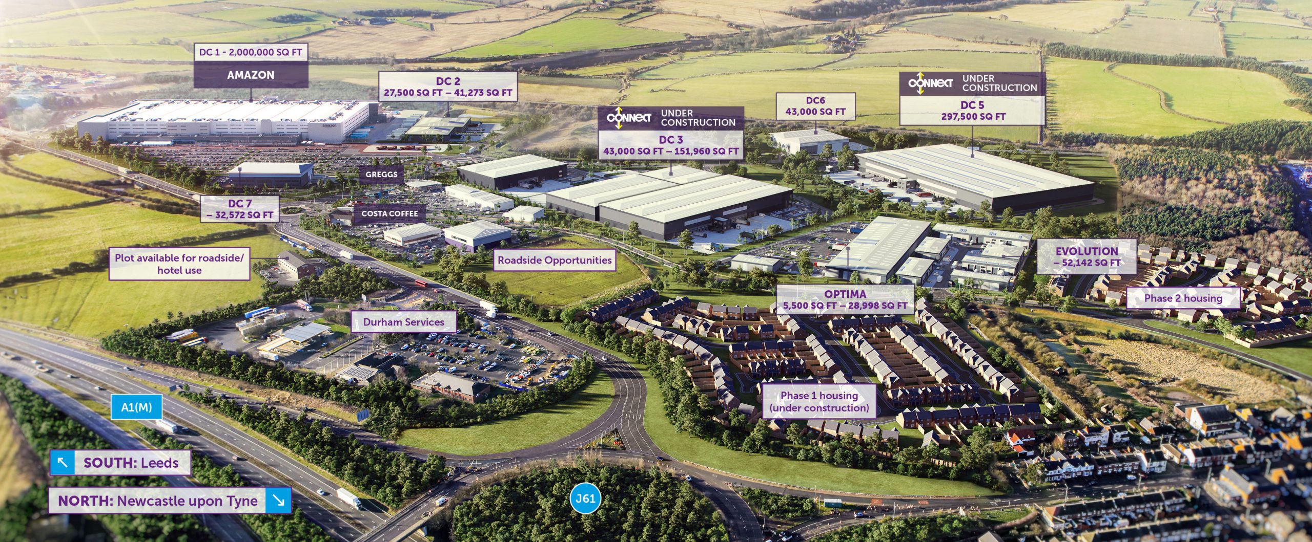 Integra61 Durham has not only created a vast industrial space, but has also brought forward provision for 270 new homes, a care home, a doctor’s surgery, a nursery, a pub, a hotel and a number of restaurants and retail outlets, with works for the care home having now commenced.